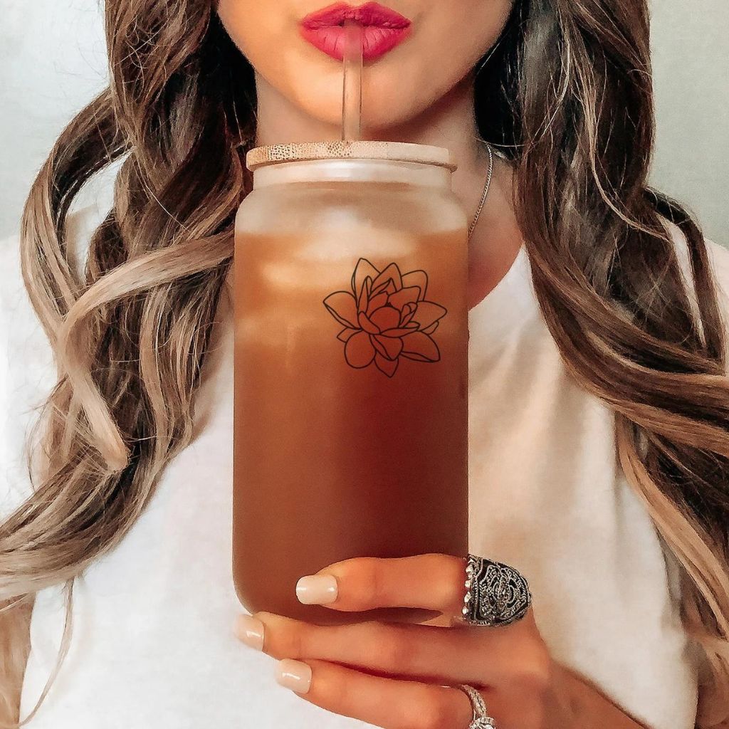 These clear or frosted glass tumblers / glass cans are personalized with the name of your choice. Featuring a bamboo lid to accommodate straw usage as well as easy sipping. An inner seal ring completes the secure, push on lid to minimize accidental leakage. Paired with a reusable durable straw with a ring stopper. These make the perfect gift for a friend or yourself!