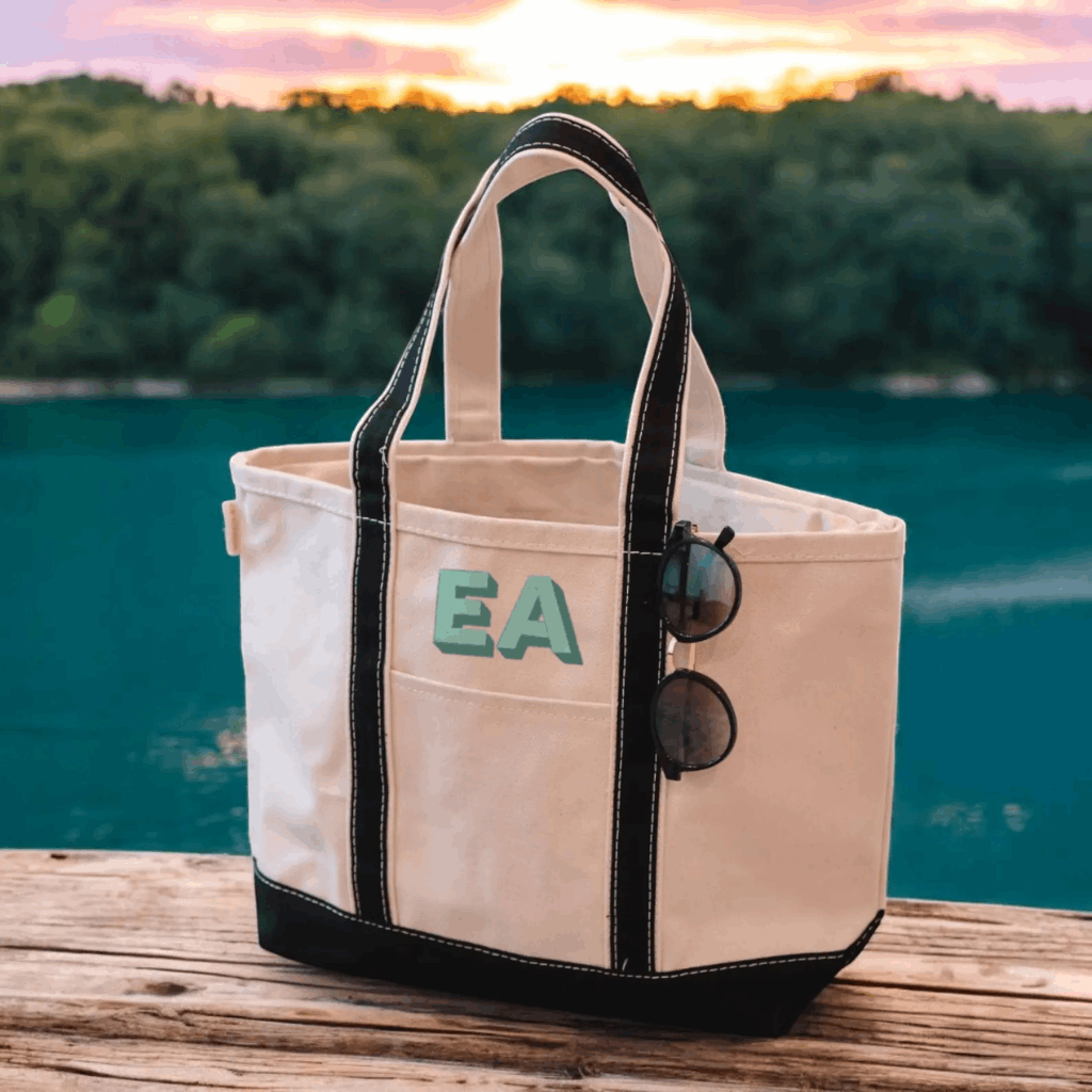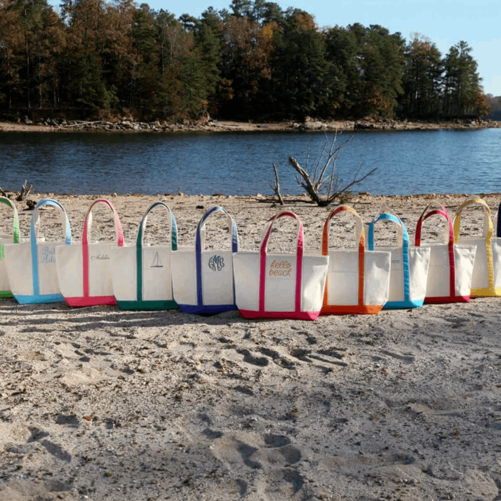 These canvas monogrammed tote bags / classic totes with zipper are exactly what you are looking for for this years tote! This personalized / embroidered tote bag and bridesmaid bag is your go to summer bag whether it be for the boat, beach, or day at the park! Embroider with a name or monogram of your choice!
