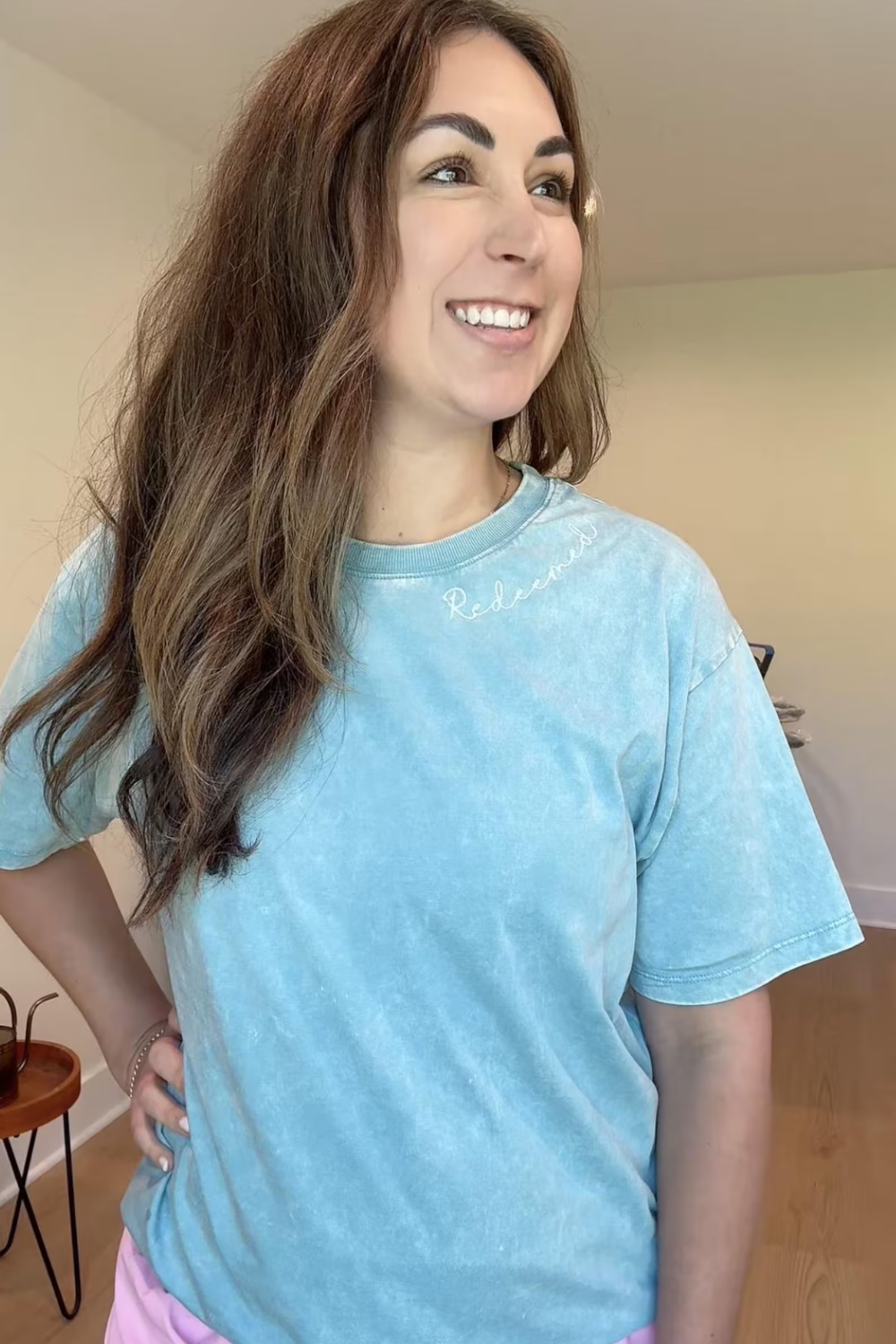 Enhance your faith-based wardrobe with our beautifully embroidered t-shirt featuring your name or favorite Bible verse delicately stitched along the neckline. Each shirt is custom made with high-quality embroidery that won't fade or peel, creating a personalized treasure that celebrates both your faith and personal style. Perfect for casual wear, church events, or as a meaningful gift for the special mama in your life who loves to wear her faith and family close to her heart.