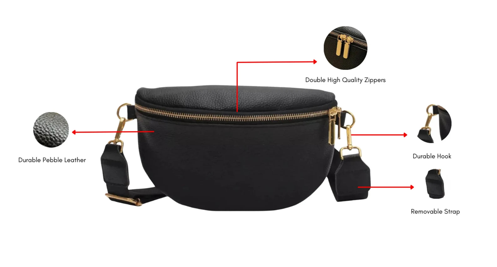 - Adjustable Sling Bag/ Waist Belt Bag: This bag comes with an adjustable waist strap so you can adjust to your perfect size. We offer the option to upgrade your strap for fully customizable unique style.