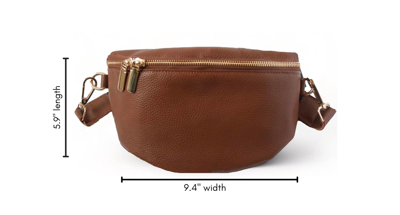 Large Capacity Leather Fanny Pack: 9.4”x5.9”x3.5”. With our sleek design, it effortlessly combines fashion and convenience for your on-the-go lifestyle. Elevate your daily adventures and keep your belongings organized in style with our Large Capacity Leather Fanny Pack.