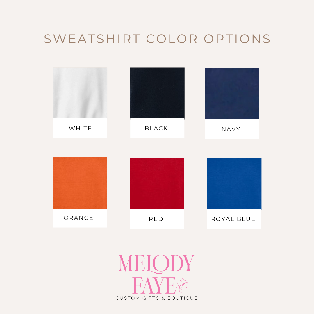 Available in vibrant colors including Red, Orange, Royal Blue, Navy, Black, and White, you can customize your sweatshirt to match your team's colors or represent your city with pride. Whether you're a player, coach, or dedicated fan, this sweatshirt is a great way to show your support and unity.