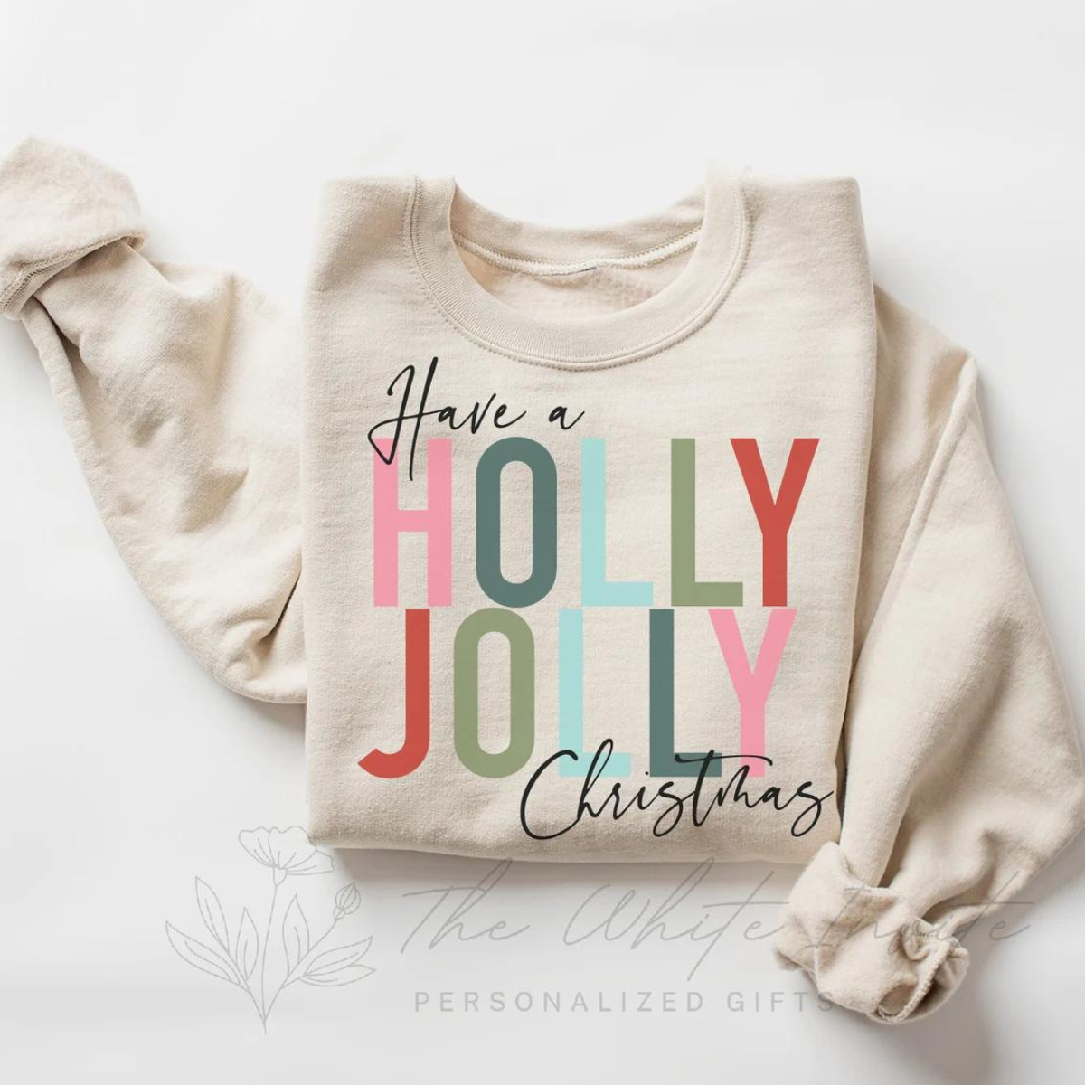 Adorned with a playful "Holly Jolly" motif, our sweatshirt captures the whimsy and wonder of Christmastime, making it the perfect companion for cozy evenings by the fire or merry gatherings with loved ones. Whether you're dashing through the snow or decking the halls with boughs of holly, this sweatshirt promises to keep your spirits bright all season long.