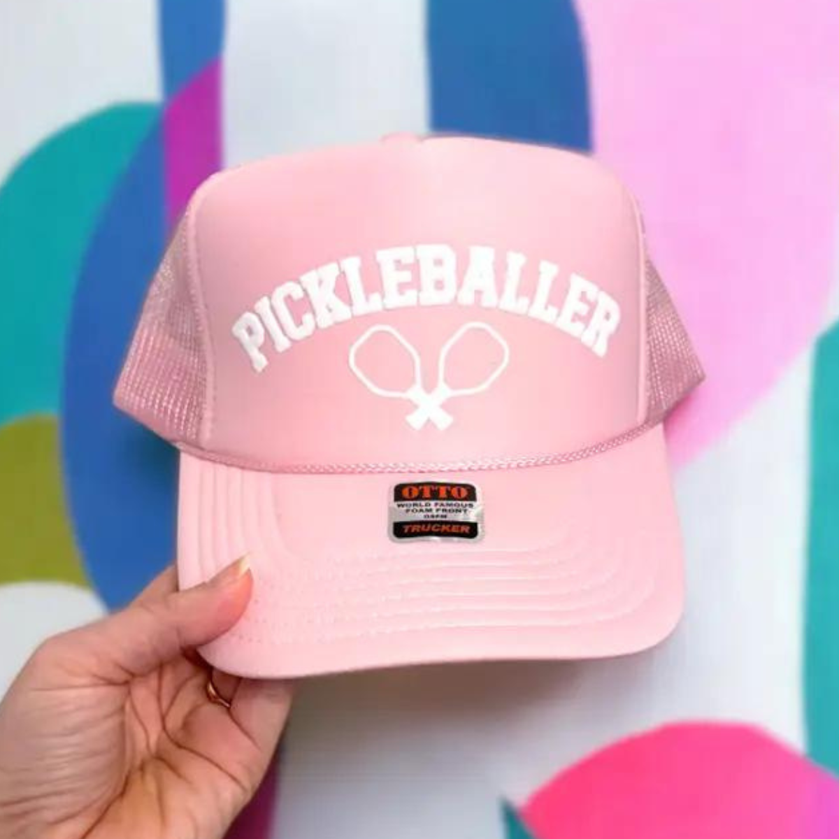 Serve up style on and off the court with our Pink Pickle-ball Trucker Hat, designed for the ultimate pickleballer. This vibrant hat features a puff screenprint that adds a fun, 3D touch to your game-day attire. Whether you're scoring points or just out for a casual day, this playful and comfortable hat is sure to be a hit!