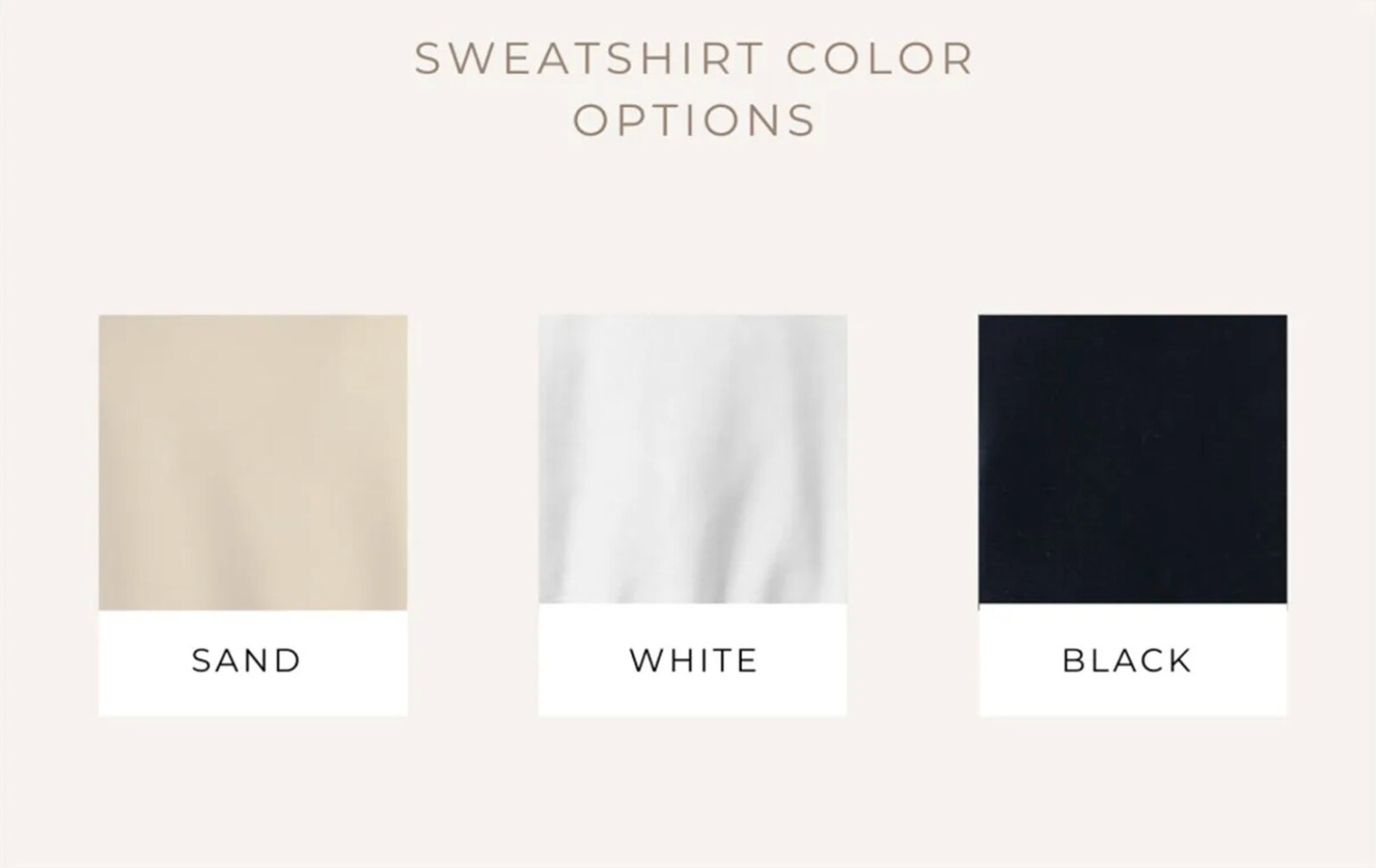 - Light sweatshirts will have black text, dark sweatshirts will have white text