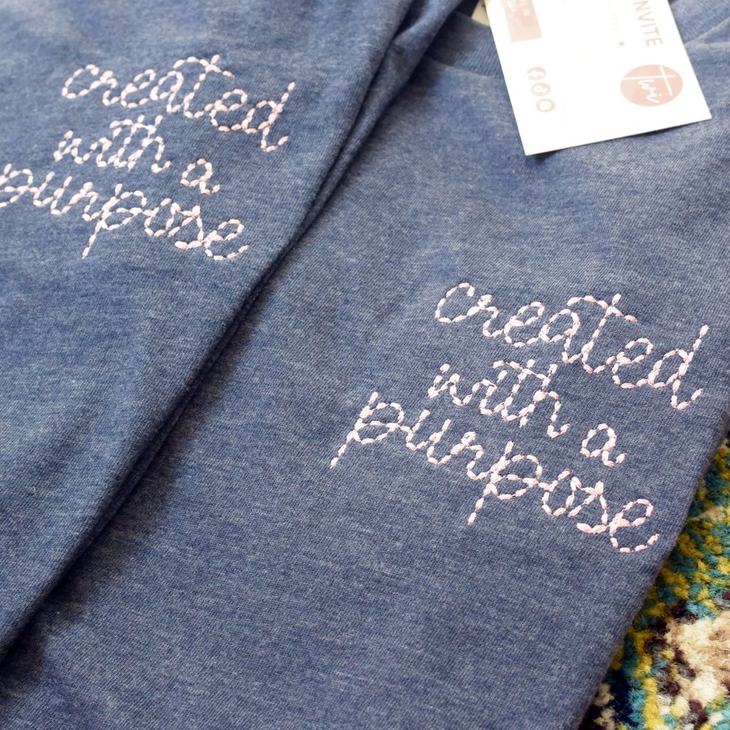 This charming tee features a beautifully embroidered "Created With A Purpose" design that adds a touch of elegance and whimsy to your everyday look. Crafted from soft, high-quality fabric, it ensures comfort and breathability, making it the perfect shirt any day.