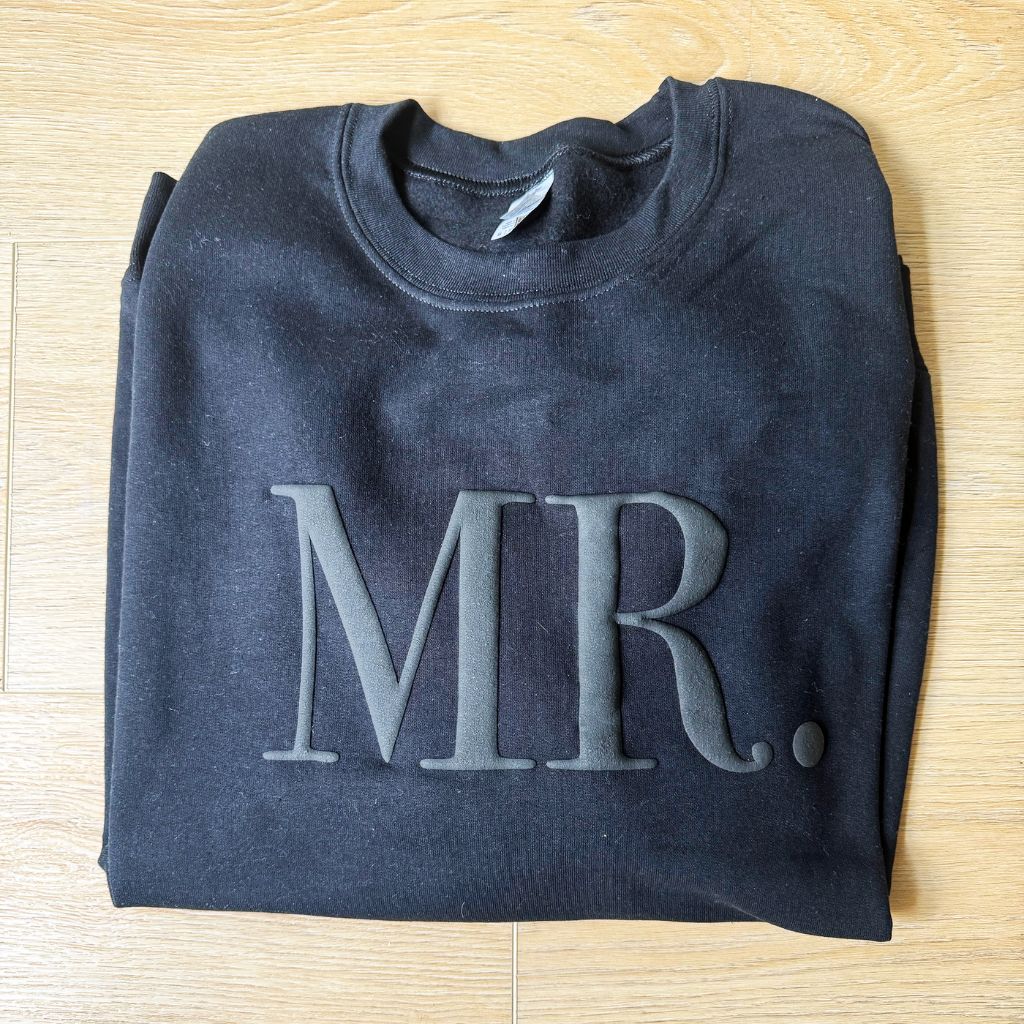 This Mr. sweatshirt with embossed text is the perfect item to wear while prepping for your wedding day! This future Mr. crewneck sweat shirt is a wonderful engagement gift that he will adore!