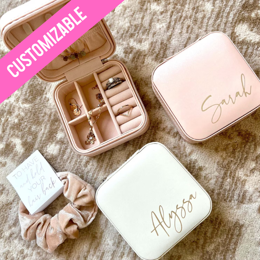 - This listing is for 1 personalized travel jewelry box. Contents in box are not included.
