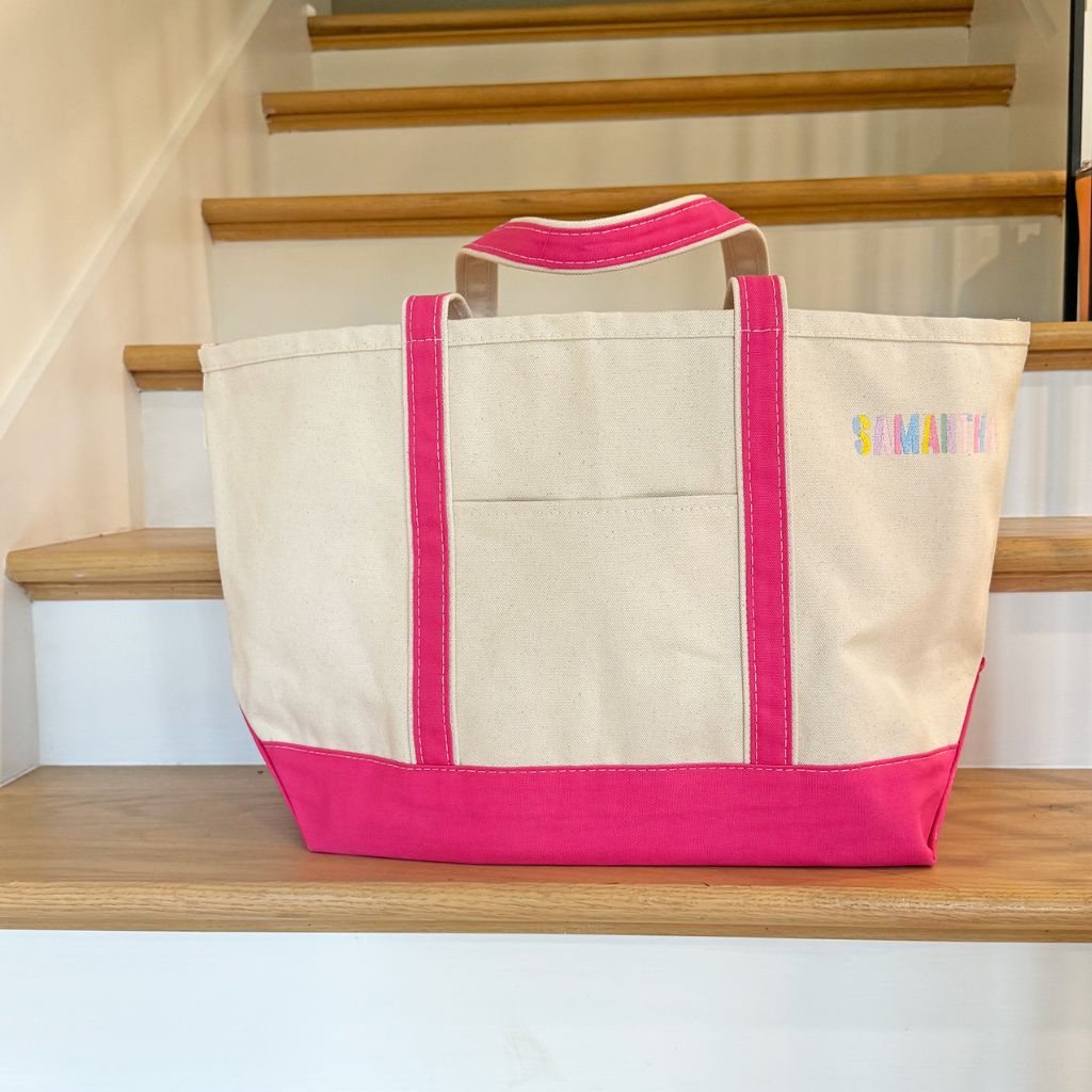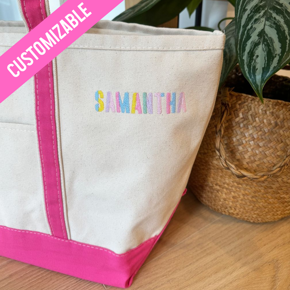 These canvas tote bags with zipper are exactly what you are looking for this years tote! This personalized embroidered tote bag and bridesmaid bag is your go to summer bag whether it be for the ride along, beach or day at the park! Embroider with a name of your choice!